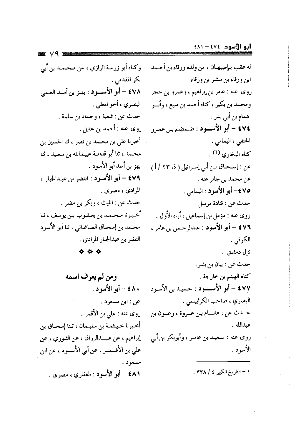 بهز بن أَسد أبوالأسود. 479 - أَبُو الْأسود: النَّضر بن عبد الْجَبَّار،