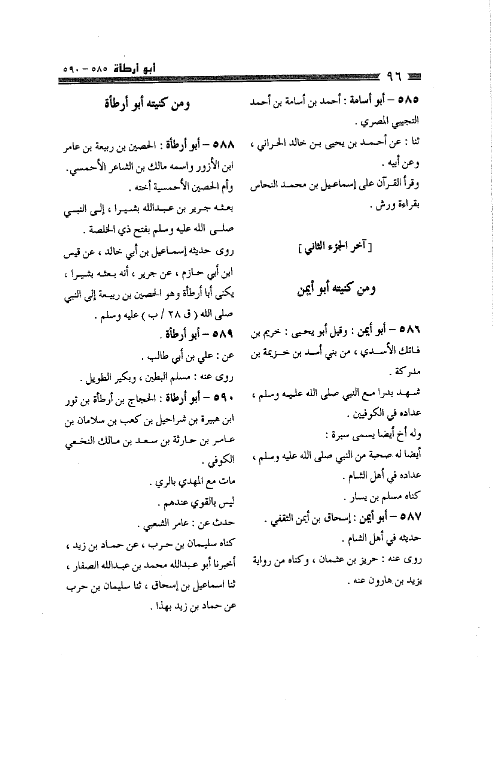 588 - أَبُو أَرْطَأَة: الْحصين بن ربيعَة بن عَامر