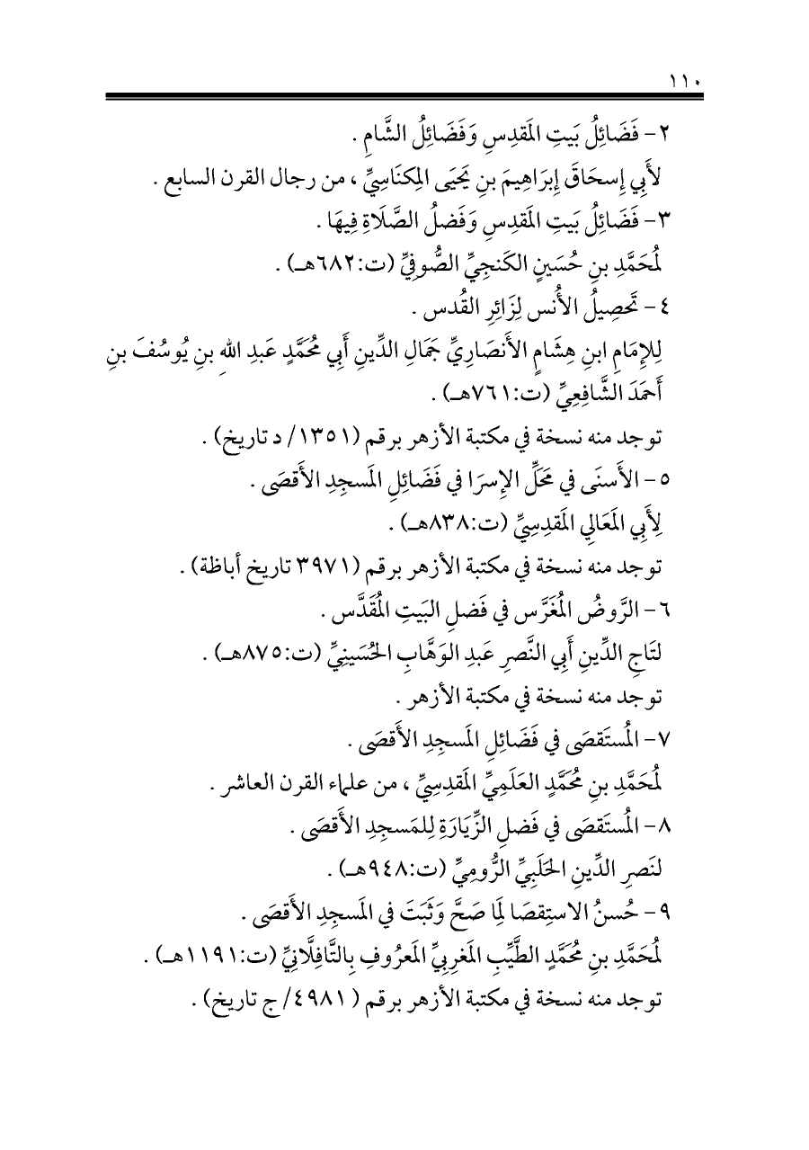 ٨ - المُستَقصَى في فَضلِ الزِّيَارَةِ لِلمَسجِدِ الأَقصَى.