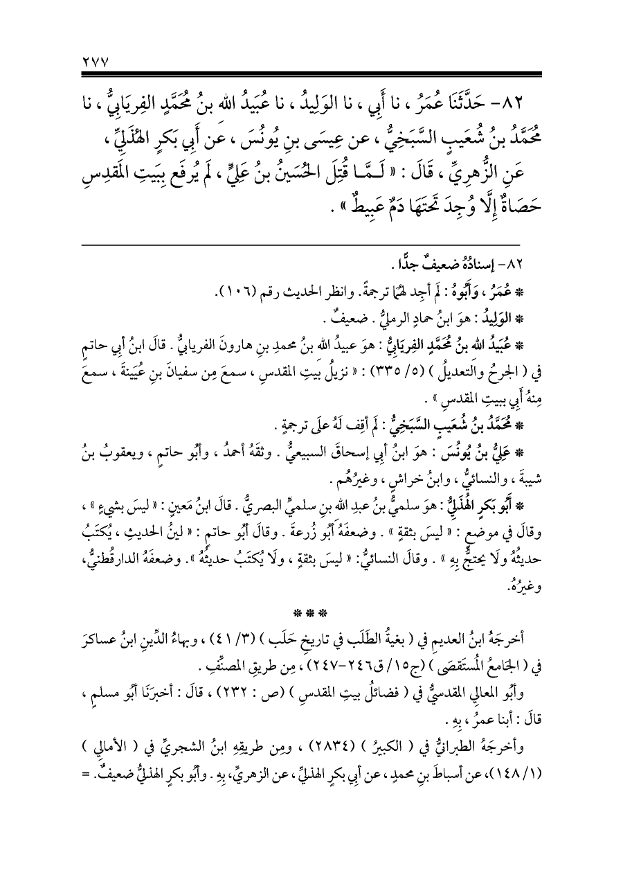 ٨٢ - إسنادُهُ ضعيفٌ جدًّا.