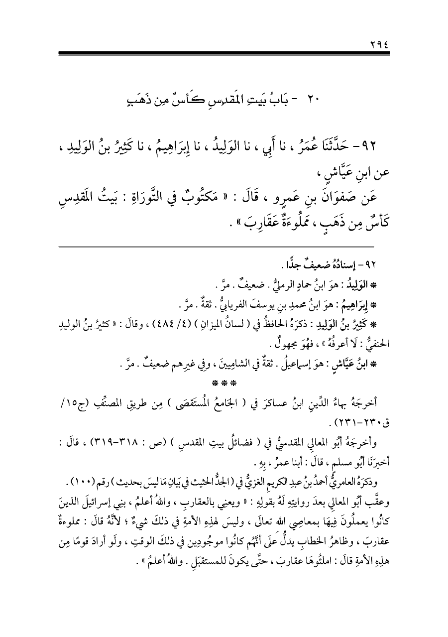 ٩٢ - إسنادُهُ ضعيفٌ جدًّا.