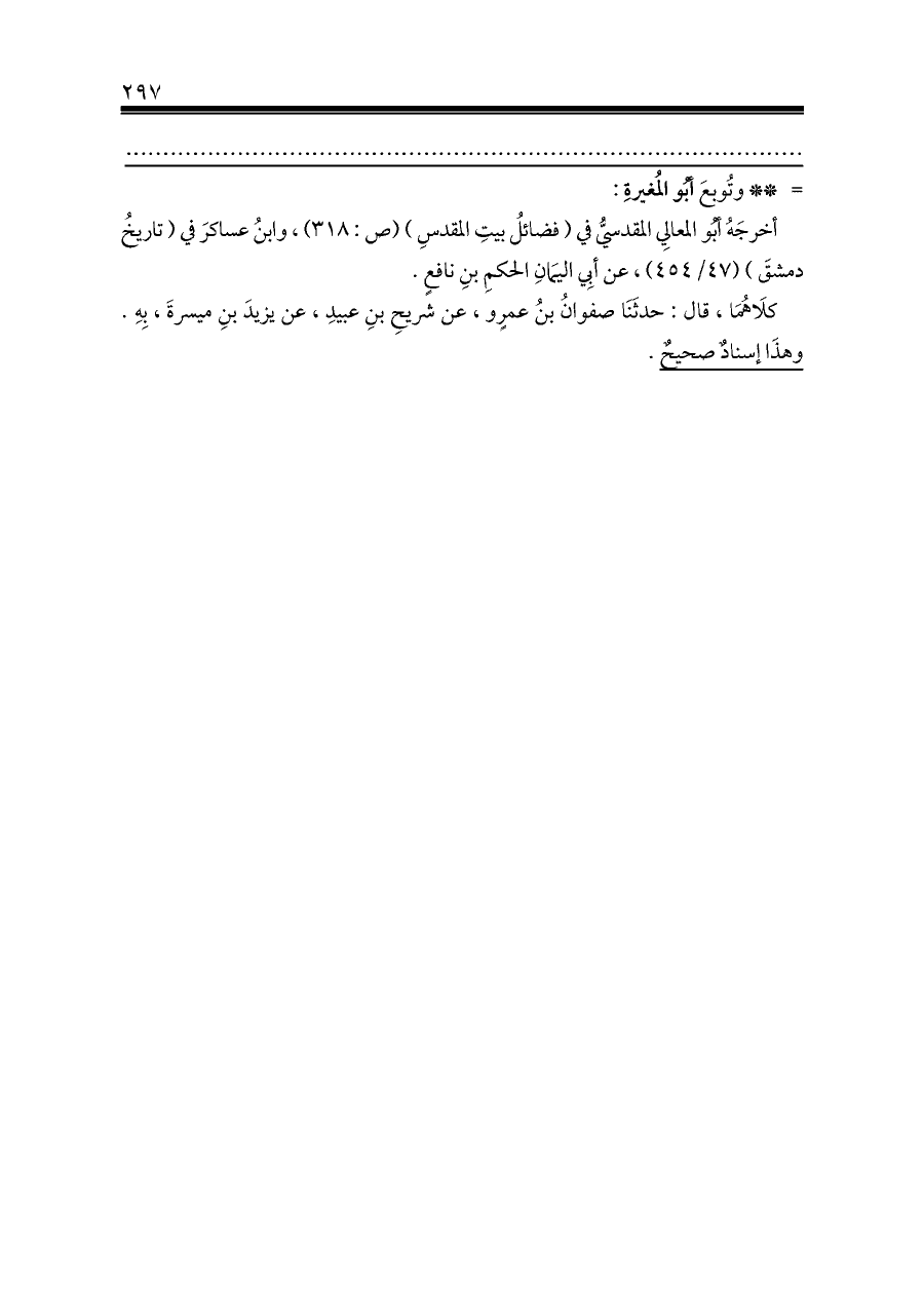 = ** وتُوبعَ أبُو المُغيرةِ: