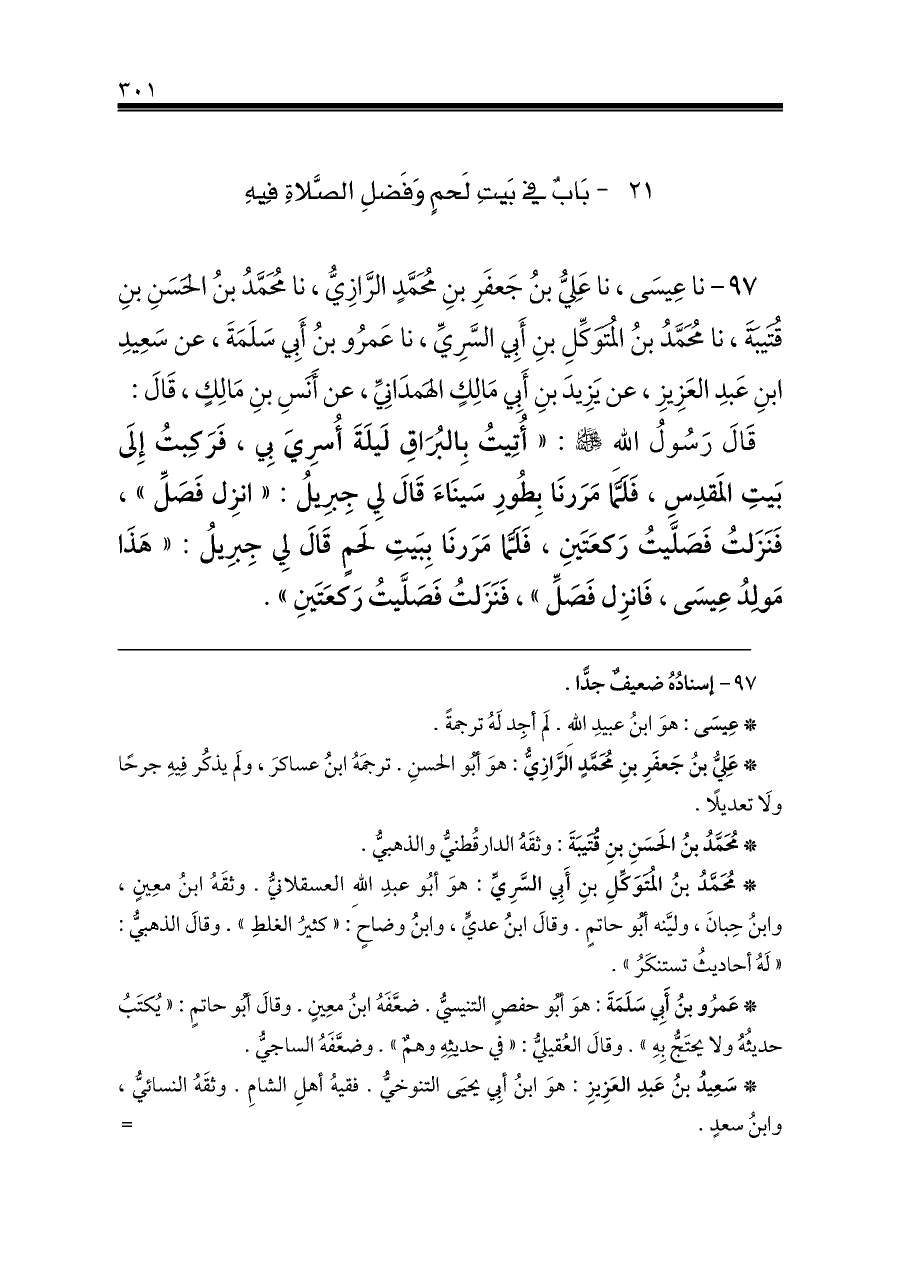 ٩٧ - إسنادُهُ ضعيفٌ جدًّا.