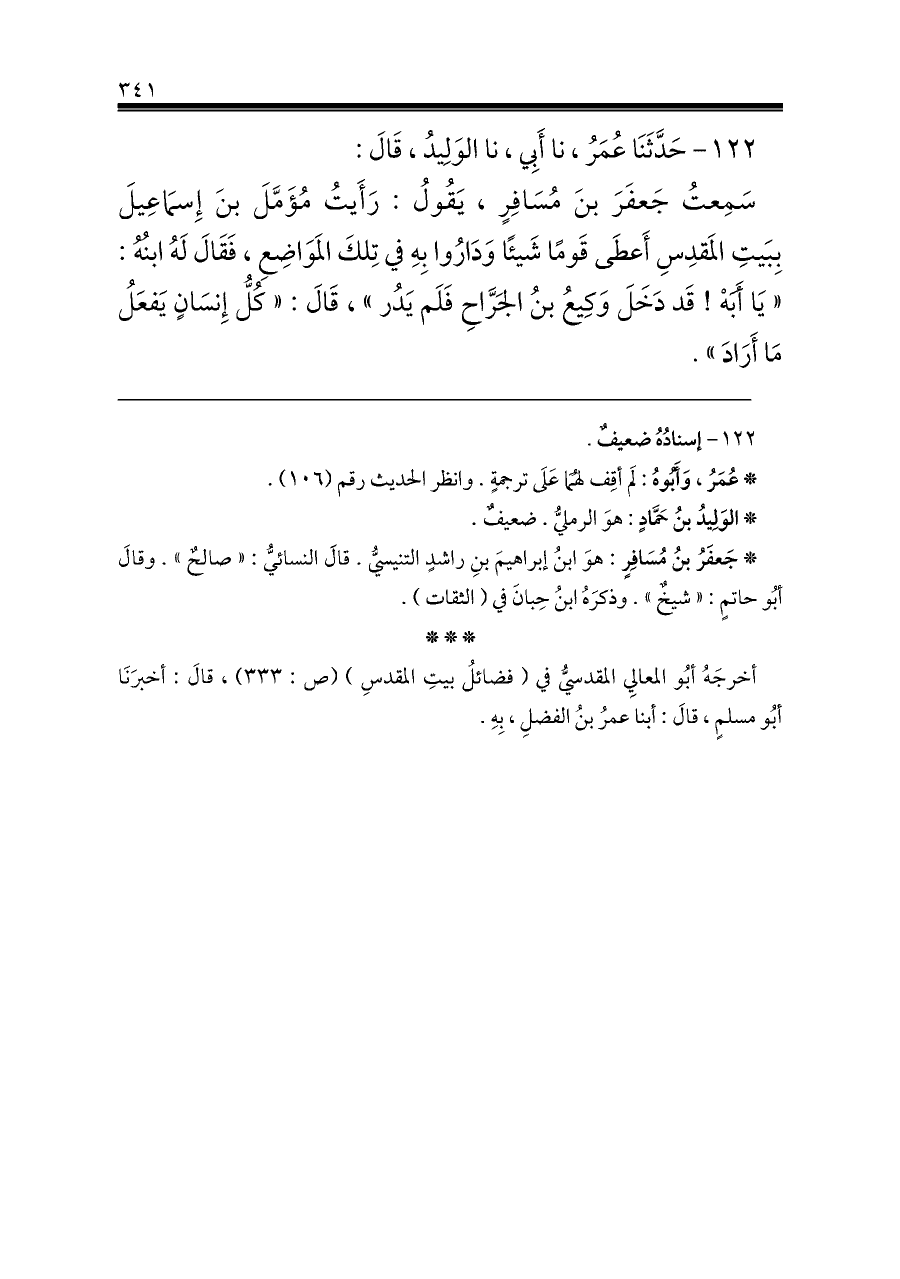 ١٢٢ - إسنادُهُ ضعيفٌ.
