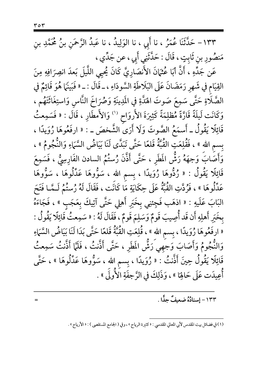 ١٣٣ - إسنادُهُ ضعيفٌ جدًّا. ... =