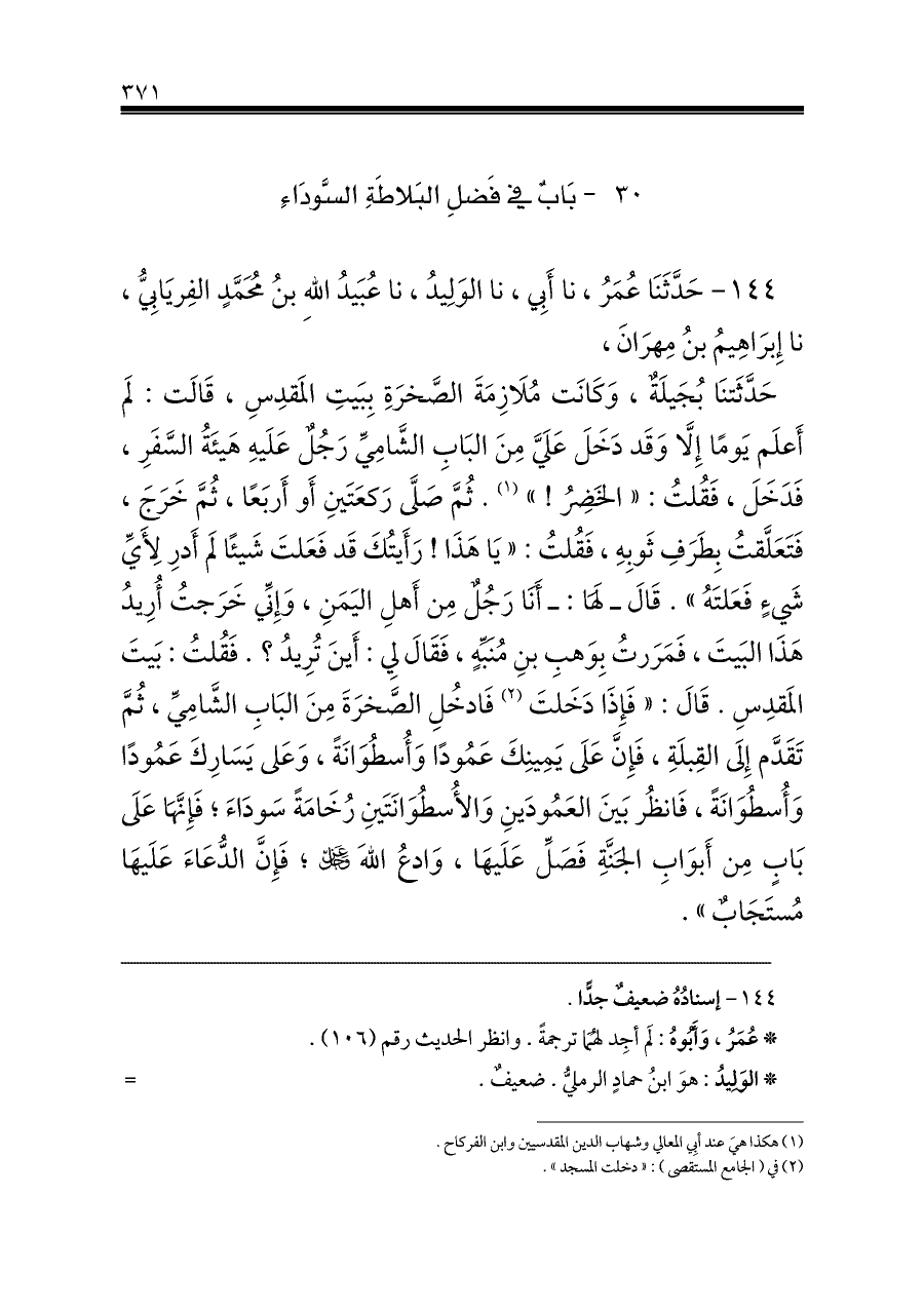 ١٤٤ - إسنادُهُ ضعيفٌ جدًّا.