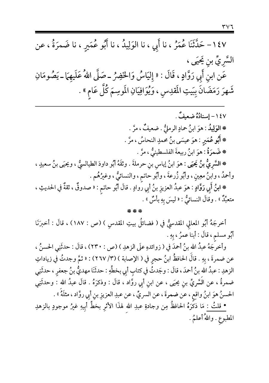 ١٤٧ - إسنادُهُ ضعيفٌ.