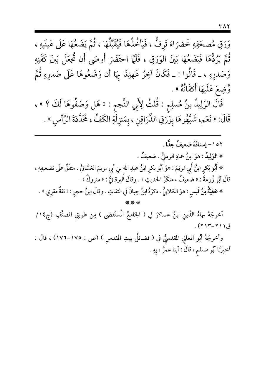 ١٥٢ - إسنادُهُ ضعيفٌ جدًّا.