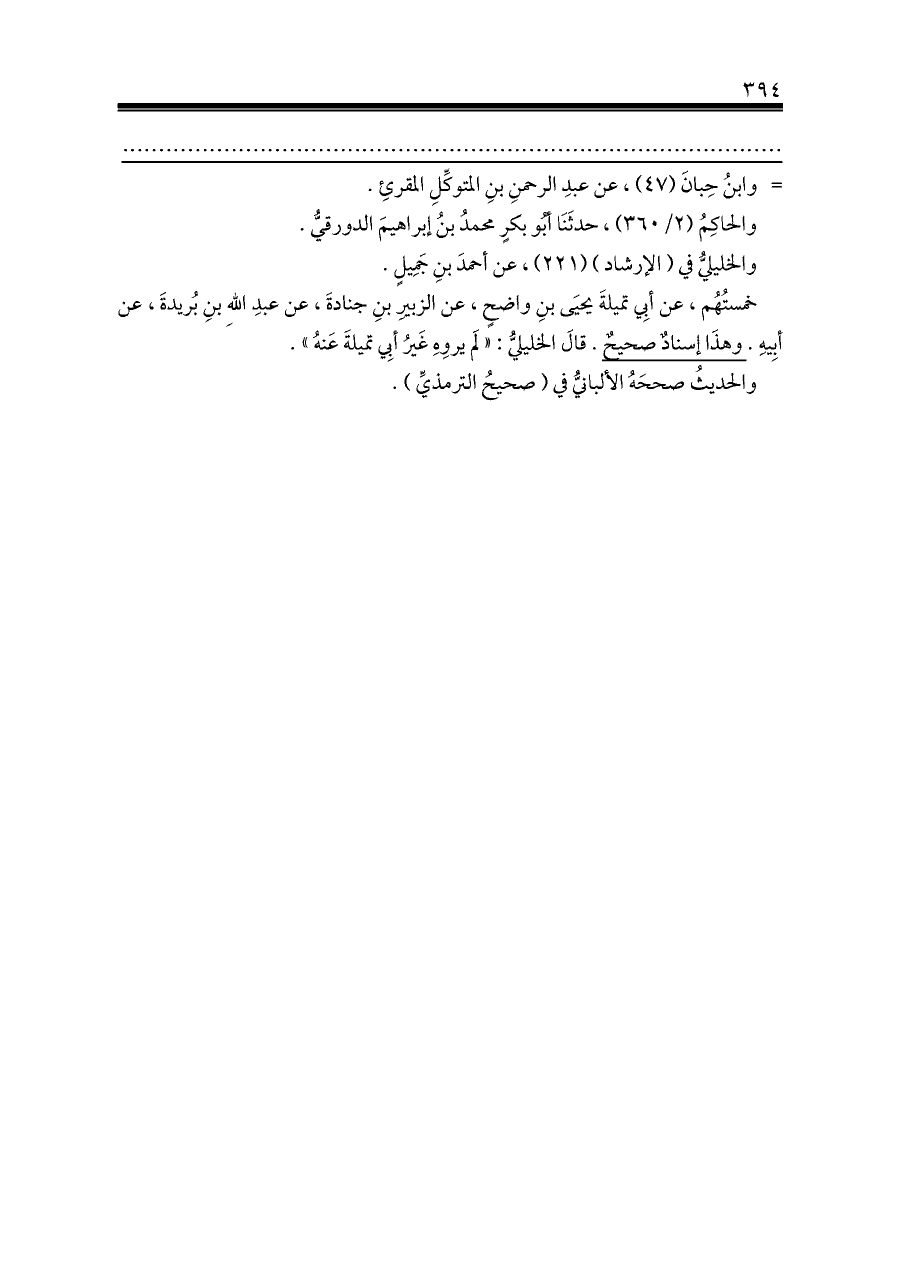 = وابنُ حِبانَ (٤٧)، عن عبدِ الرحمنِ بنِ المتوكِّلِ المقرئِ.
