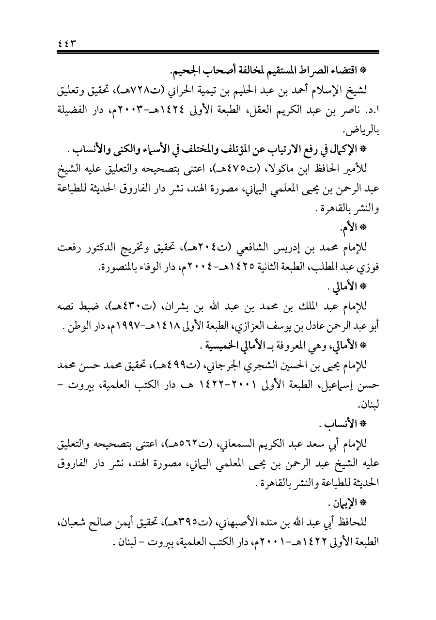 * اقتضاء الصراط المستقيم لمخالفة أصحاب الجحيم.