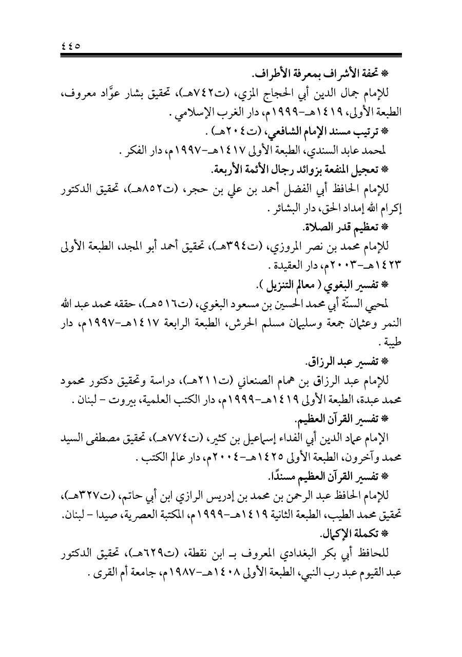 للإمام جمال الدين أبي الحجاج المزي، (ت ٧٤٢ هـ)، تحقيق بشار عوَّاد معروف، الطبعة الأولى، ١٤١٩ هـ-١٩٩٩ م، دار الغرب الإسلامي.