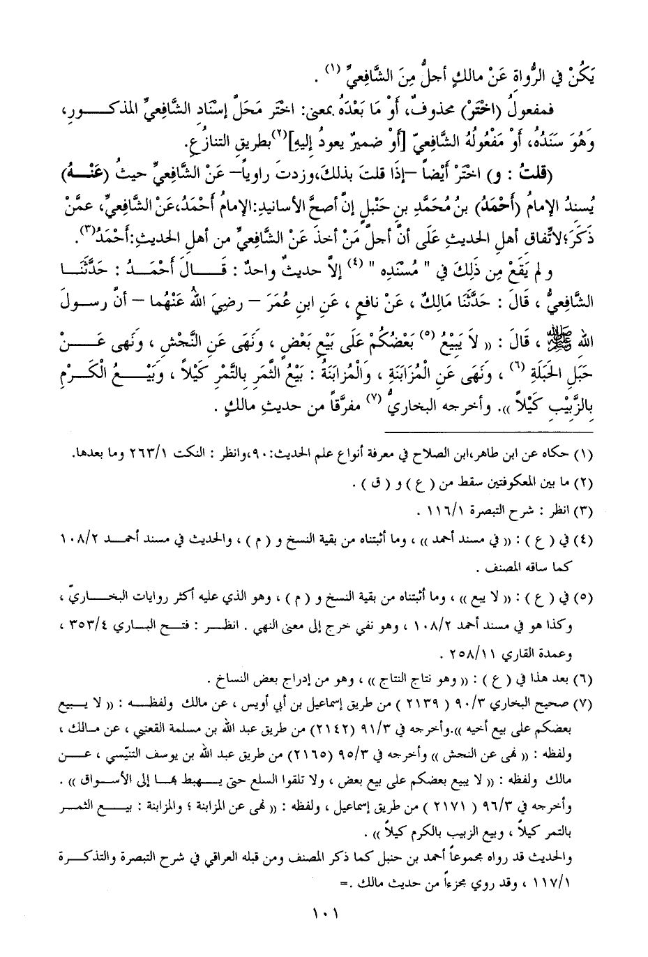 (قلتُ: و) اخْتَرْ أَيْضاً -إذَا قلتَ بذلكَ، وزدتَ راوياً- عَنْ الشَّافِعيِّ حيثُ (عَنْهُ) يُسنِدُ الإمامُ (أَحْمَدُ) بنُ مُحَمَّدِ بنِ حَنْبلٍ إنَّ أصحَّ الأسانيدِ: الإمامُ أَحْمَدُ، عَنْ الشَّافِعيِّ، عمَّنْ ذَكَرَ؛ لاتِّفاقِ أهلِ الحديثِ عَلَى أنَّ أجلَّ مَنْ أخذَ عَنْ الشَّافِعيِّ من أهلِ الحديثِ: أَحْمَدُ (¬3).