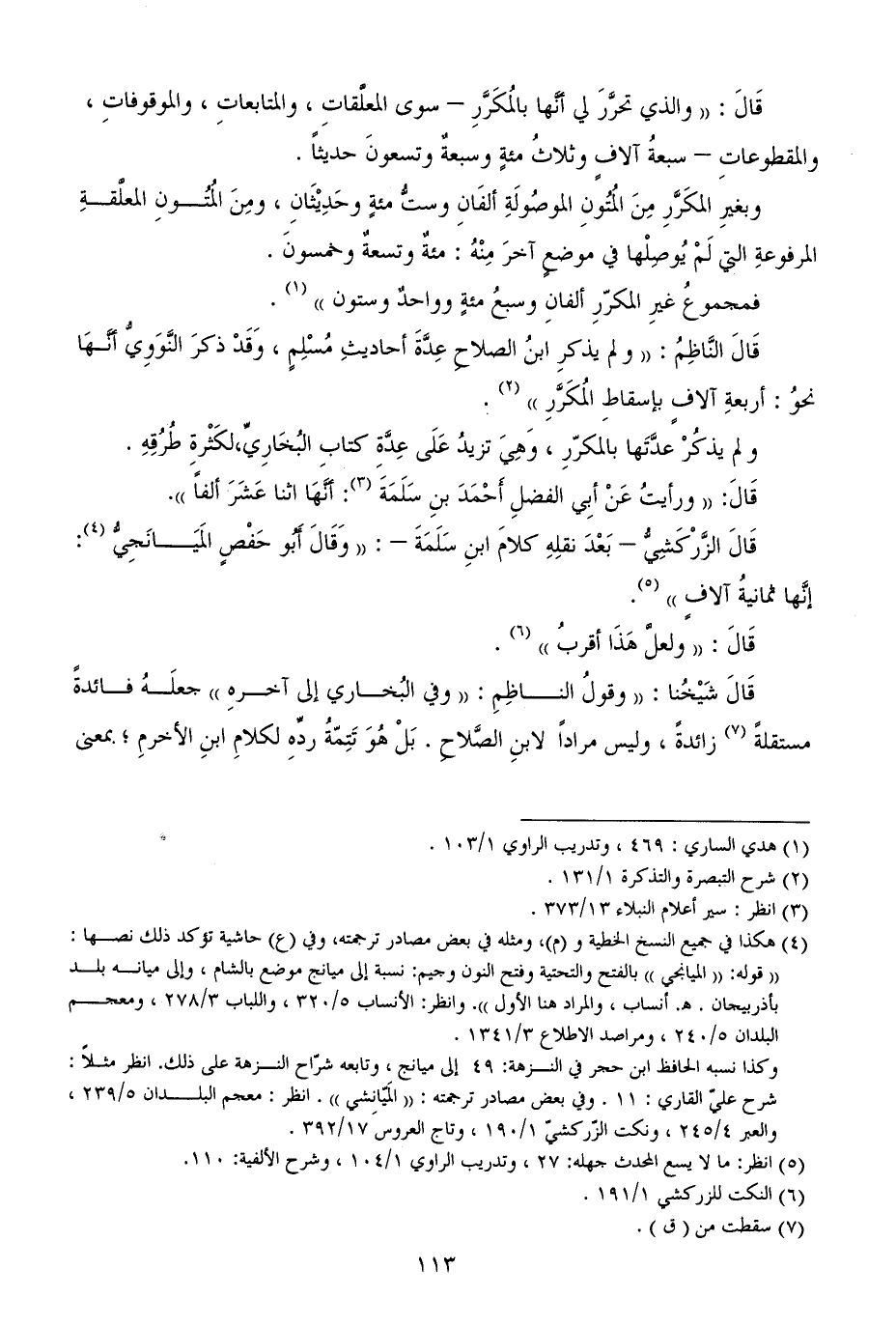 (¬5) انظر: ما لا يسع المحدث جهله: 27، وتدريب الراوي 1/ 104، وشرح الألفية: 110.