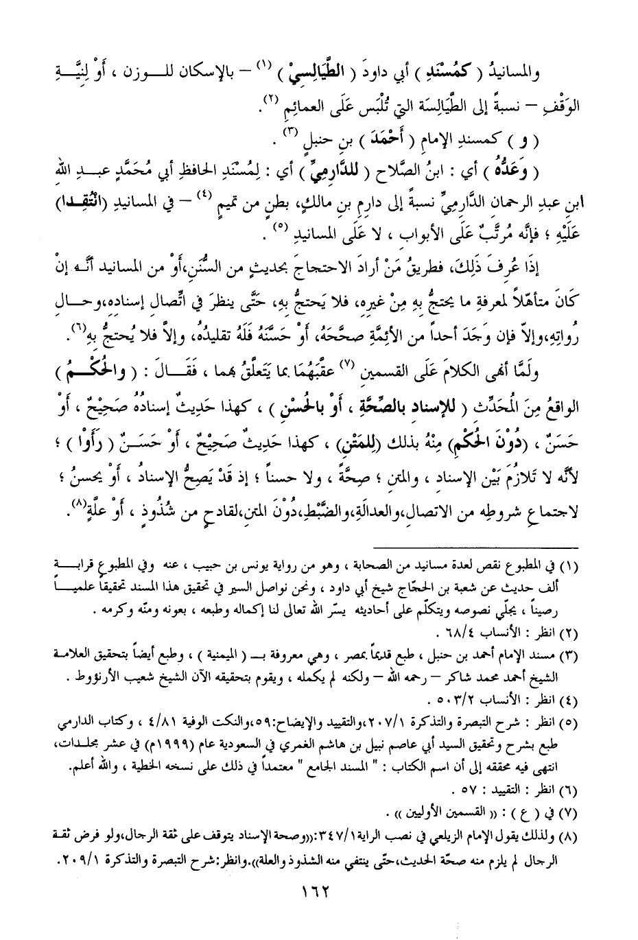 (¬5) انظر: شرح التبصرة والتذكرة 1/ 207، والتقييد والإيضاح: 59، والنكت الوفية 81/ 4، وكتاب الدارمي طبع بشرح وتحقيق السيد أبي عاصم نبيل بن هاشم الغمري في السعودية عام (1999م) في عشر مجلدات، انتهى فيه محققه إلى أن اسم الكتاب: " المسند الجامع " معتمداً في ذلك على نسخه الخطية، والله أعلم.