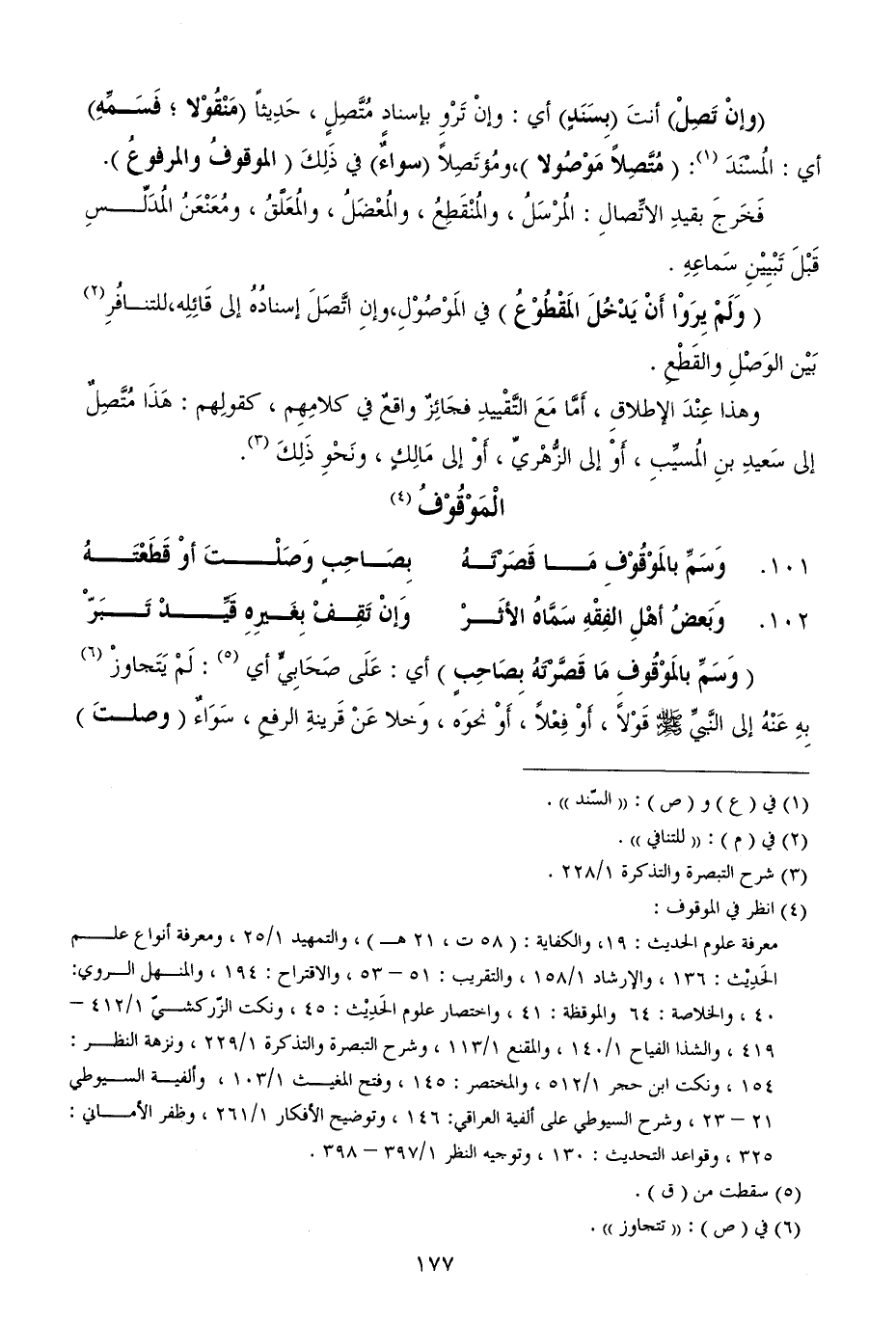101 - وَسَمِّ بالمَوْقُوْفِ مَا قَصَرْتَهُ ... بِصَاحِبٍ وَصَلْتَ أوْ قَطَعْتَهُ