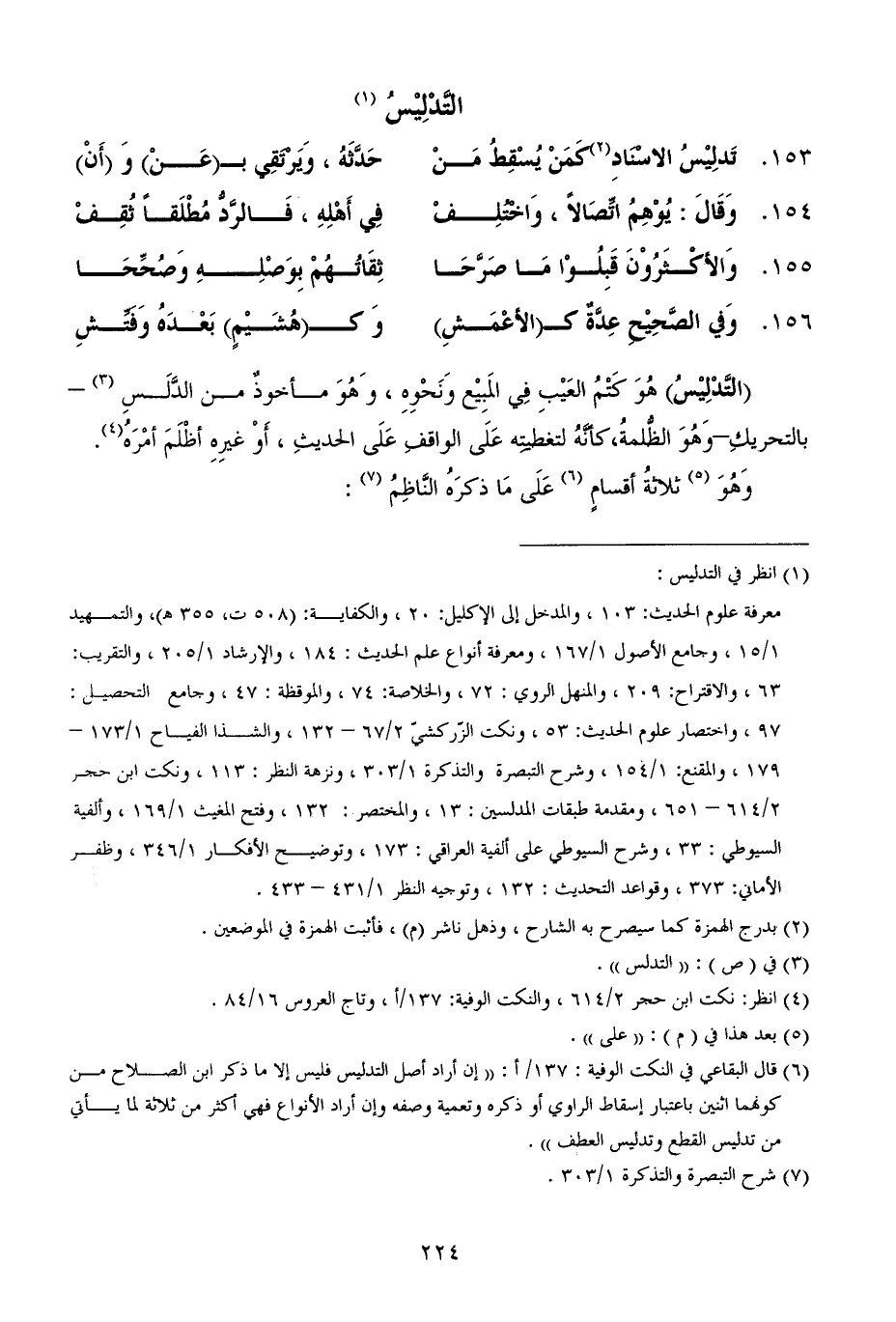 153 - تَدلِيْسُ الاسْنَادِ (¬2) كَمَنْ يُسْقِطُ مَنْ ... حَدَّثَهُ، وَيَرْتَقِي بـ (عَنْ) وَ (أَنْ)