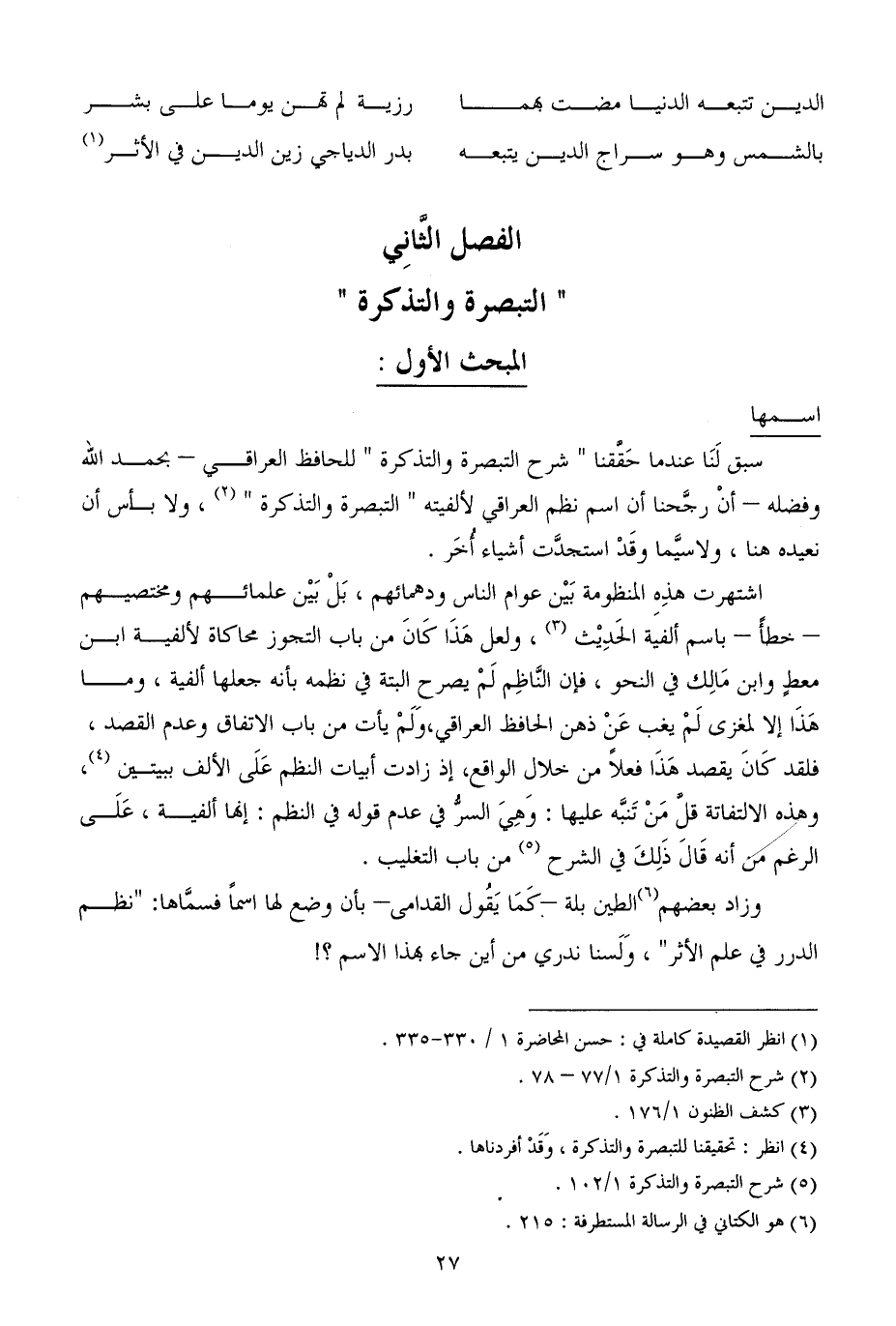 الفصل الثَّانِي: " التبصرة والتذكرة "