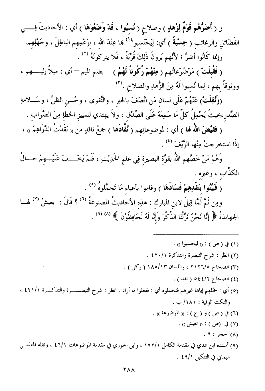 ومِن ثَمَّ لَمَّا قِيلَ لابنِ المباركِ: هذِهِ الأحاديثُ المصنوعةُ (¬6)؟ قَالَ: يعيشُ (¬7) لها الجهابذةُ {إنَّا نَحْنُ نَزَّلْنَا الذِّكْرَ وَإِنَّا لَهُ لَحَافِظُوْنَ} (¬8) (¬9).