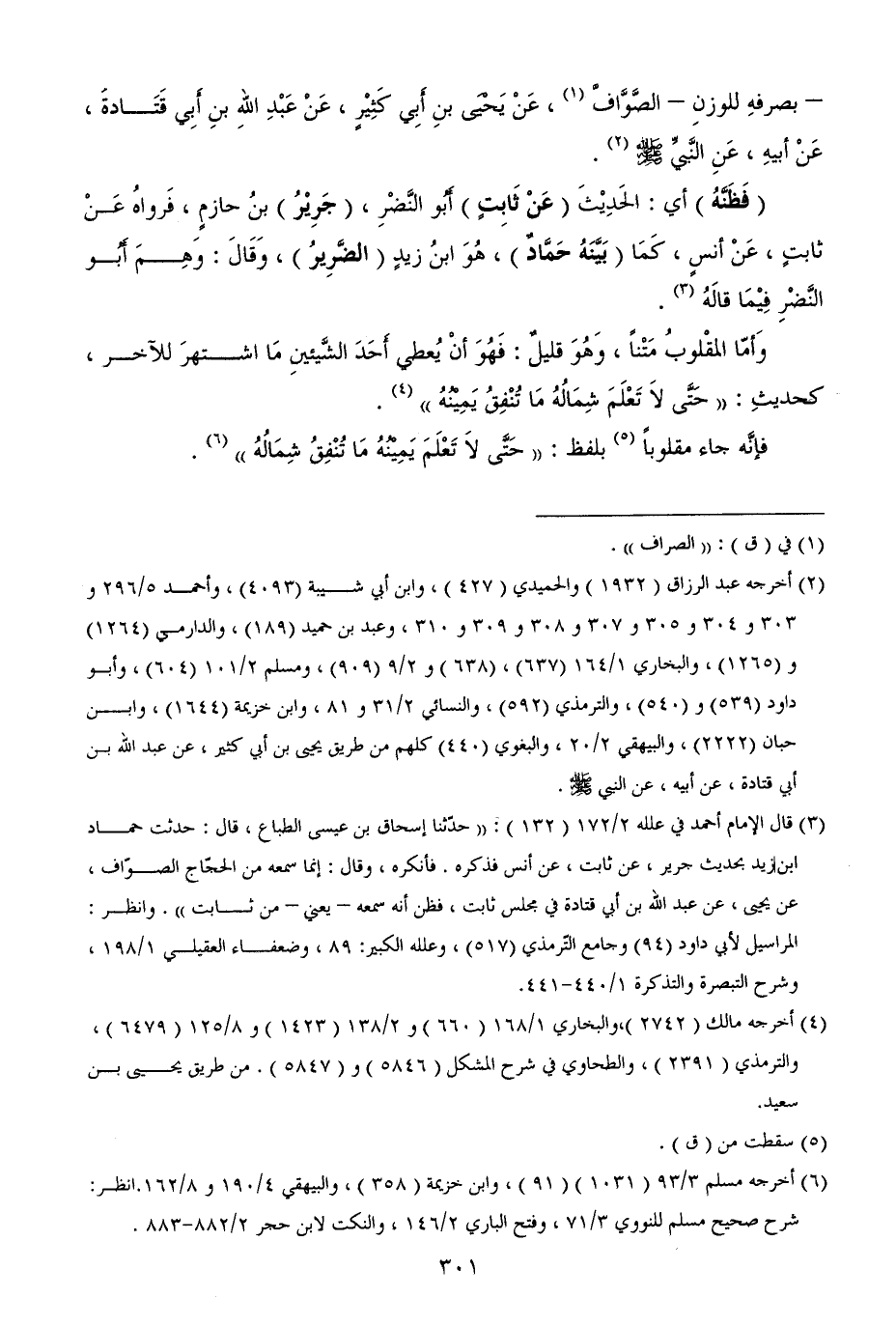 (¬3) قال الإمام أحمد في علله 2/ 172 (132): ((حدّثنا إسحاق بن عيسى الطباع، قال: حدثت حماد بن زيد بحديث جرير، عن ثابت، عن أنس فذكره. فأنكره، وقال: إنما سمعه من الحجّاج الصوّاف، عن يحيى، عن عبد الله بن أبي قتادة في مجلس ثابت، فظن أنه سمعه - يعني - من ثابت)). وانظر: المراسيل لأبي داود (94) وجامع التّرمذي (517)، وعلله الكبير: 89، وضعفاء العقيلي 1/ 198، وشرح التبصرة والتذكرة 1/ 440 - 441.
