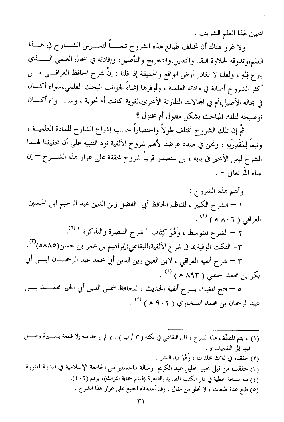 1 - الشرح الكبير، للناظم الحافظ أبي الفضل زين الدين عبد الرحيم ابن الحسين العراقي (806 هـ) (¬1).