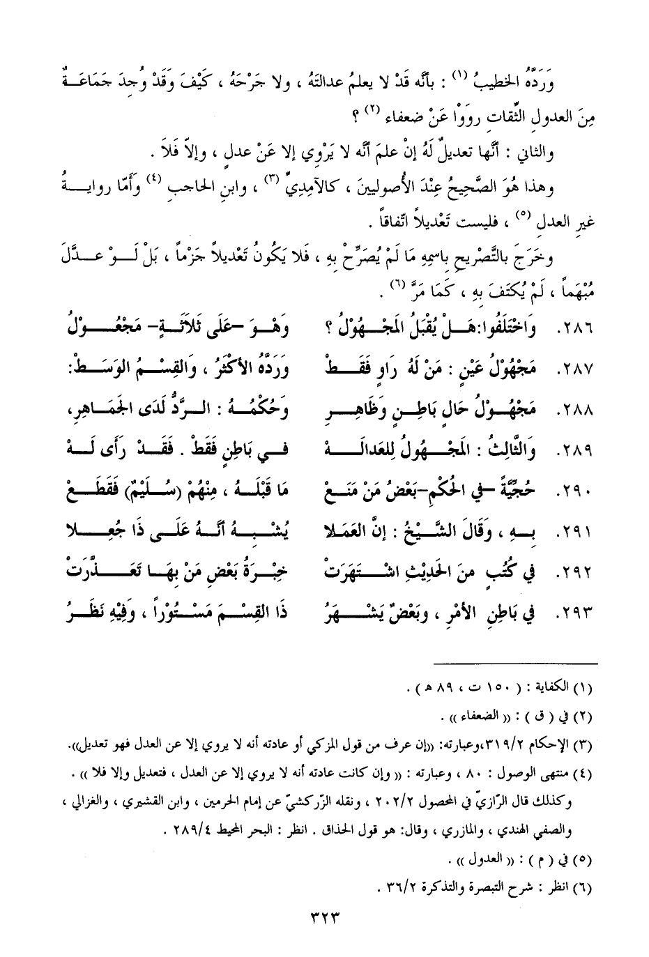 286 - وَاخْتَلَفُوا: هَلْ يُقْبَلُ المَجْهُوْلُ؟ ... وَهْوَ -عَلَى ثَلاَثَةٍ- مَجْعُوْلُ