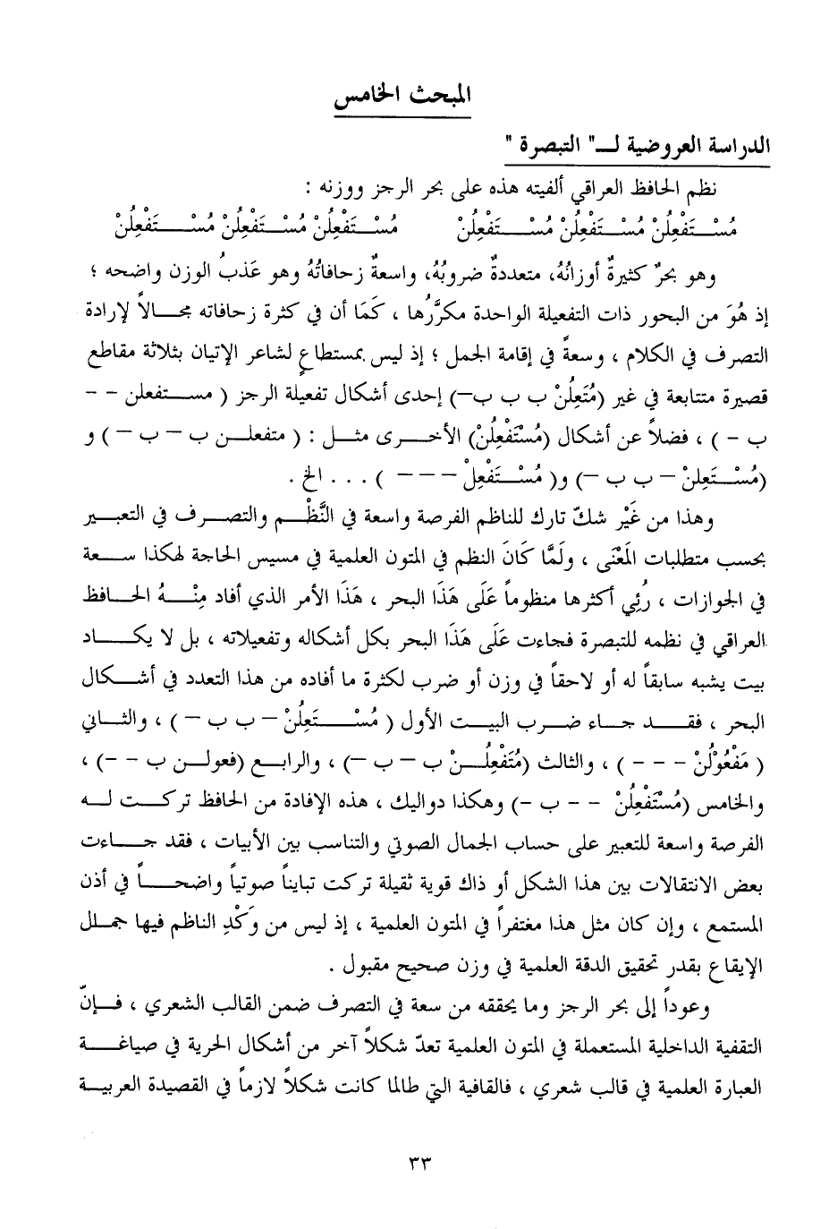 المبحث الخامس: الدراسة العروضية لـ" التبصرة "
