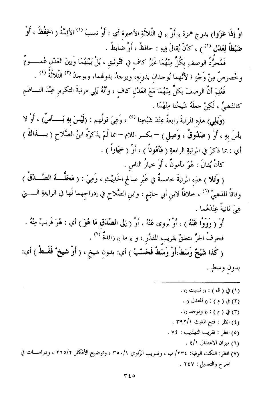 (¬7) انظر: النكت الوفية: 234/ ب، وتدريب الرّاوي 1/ 350، وتوضيح الأفكار 2/ 265، ودراسات في الجرح والتعديل: 247.