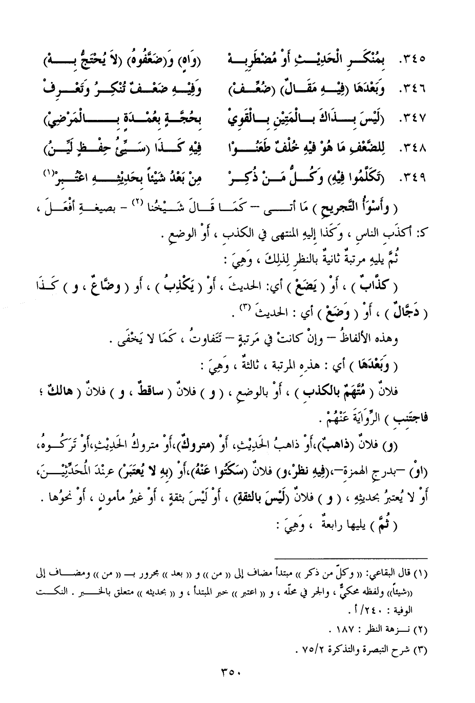 346 - وَبَعْدَهَا (فِيْهِ مَقَالٌ) (ضُعِّفْ) ... وَفِيْهِ ضَعْفٌ تُنْكِرُ وَتَعْرِفْ