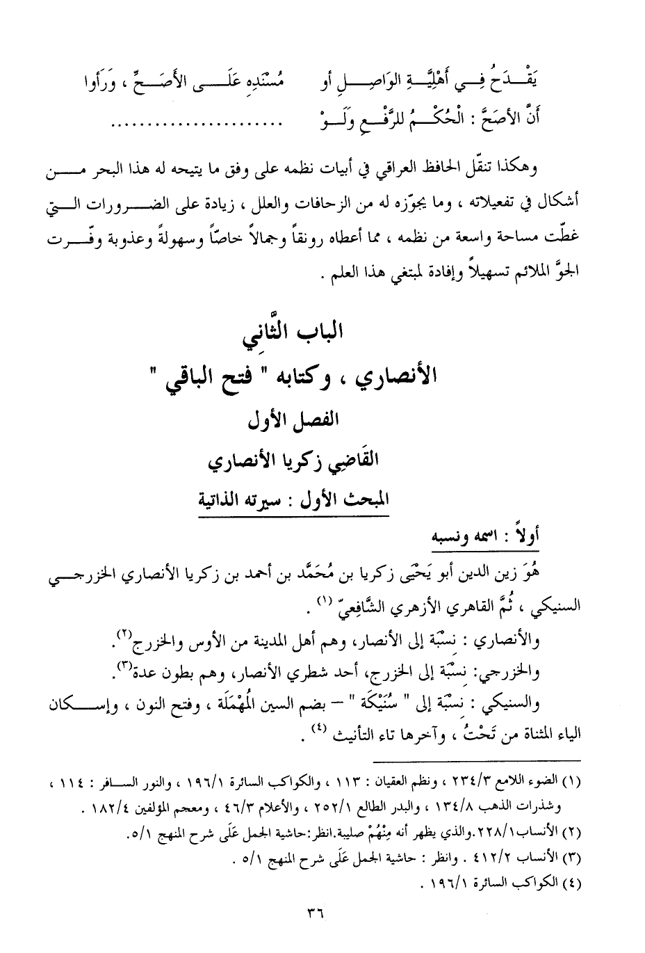 الباب الثَّانِي: الأنصاري، وكتابه " فتح الباقي "