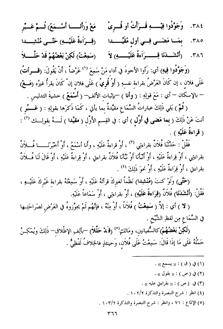 386 - (أَنْشَدَنَا قِرَاَءةً عَلَيْهِ) لاَ ... (سَمِعْتُ) لَكِنْ بَعْضُهُمْ قَدْ حَلَّلاَ