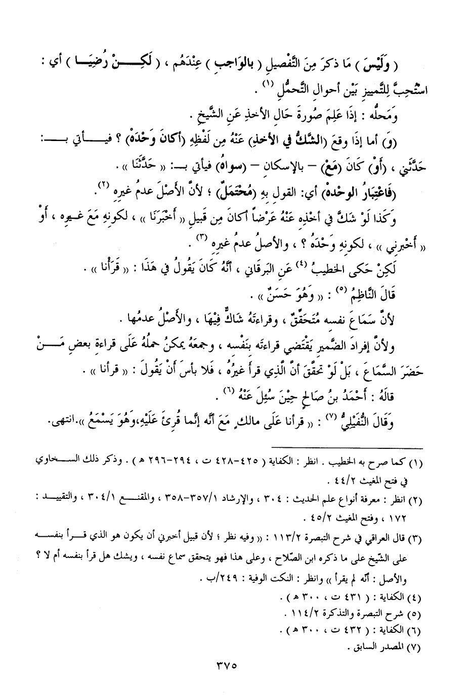 (¬1) كما صرح به الخطيب. انظر: الكفاية (425 - 428 ت، 294 - 296 هـ). وذكر ذلك السخاوي في فتح المغيث 2/ 44.