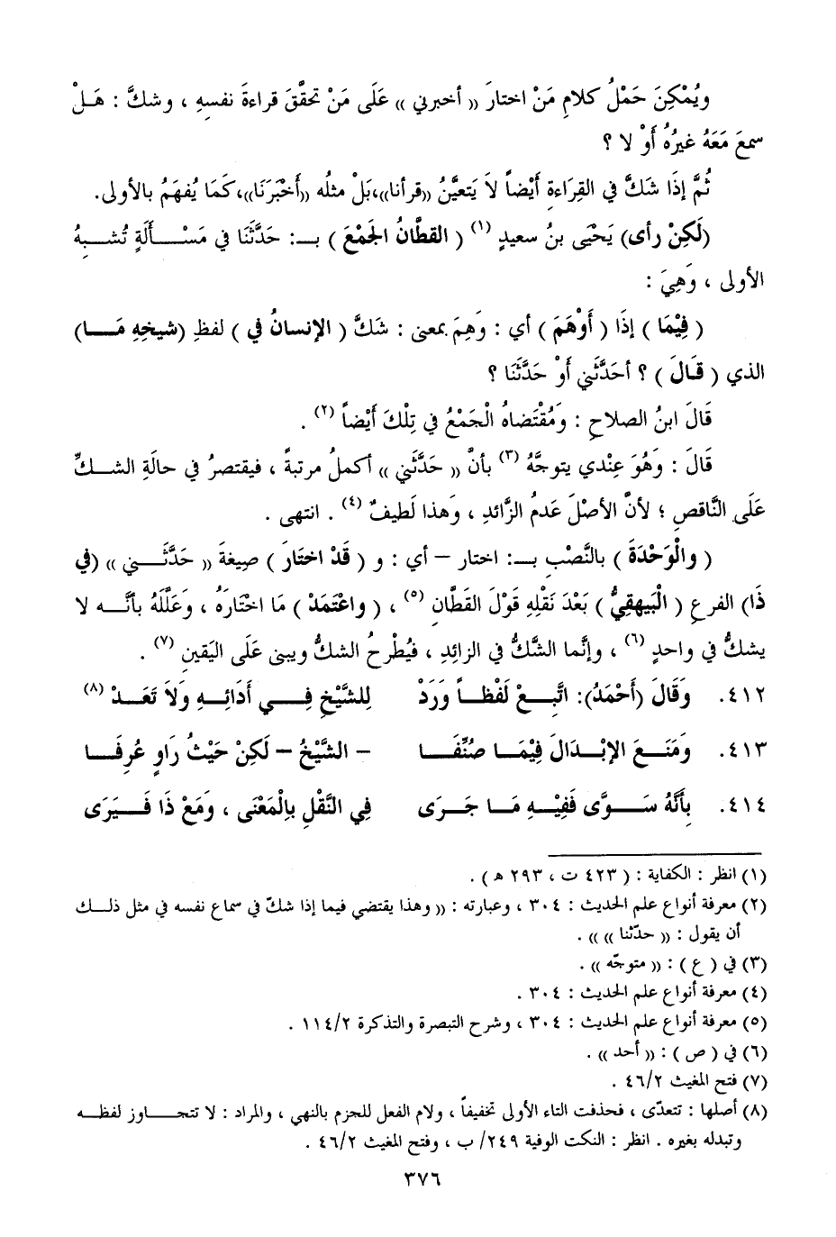(¬2) معرفة أنواع علم الحديث: 304، وعبارته: ((وهذا يقتضي فيما إذا شكّ في سماع نفسه في مثل ذلك أن يقول: ((حدّثنا)))).