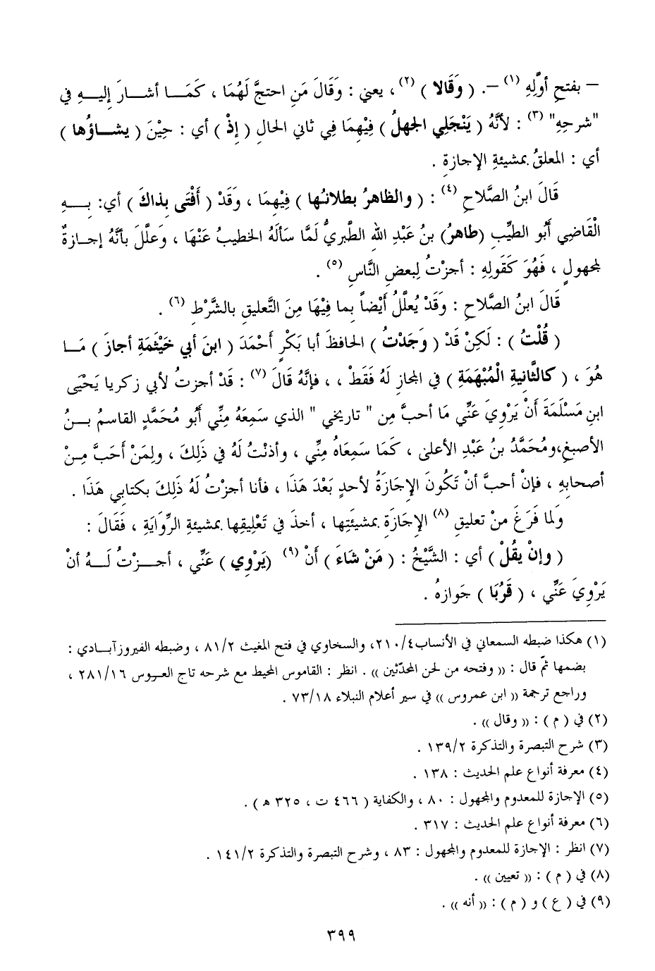 (¬7) انظر: الإجازة للمعدوم والمجهول: 83، وشرح التبصرة والتذكرة 2/ 141.