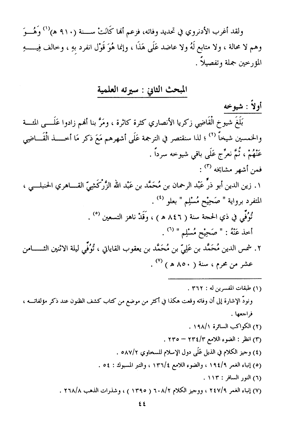 بَلَغَ شيوخ الْقَاضِي زكريا الأنصاري كثرة كاثرة، ومَرَّ بنا أنهم زادوا عَلَى المئة والخمسين شيخاً (¬2)؛ لذا سنقتصر في الترجمة عَلَى أشهرهم مَعَ ذكر مَا أخذ الْقَاضِي عَنْهُمْ، ثُمَّ نعرِّج عَلَى باقي شيوخه سرداً.