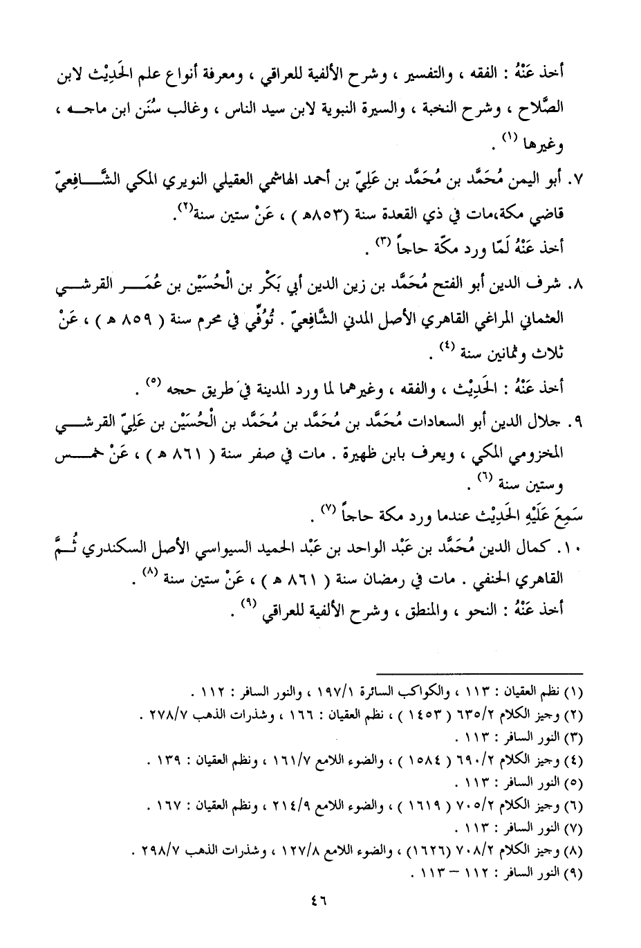 (¬1) نظم العقيان: 113، والكواكب السائرة 1/ 197، والنور السافر: 112.