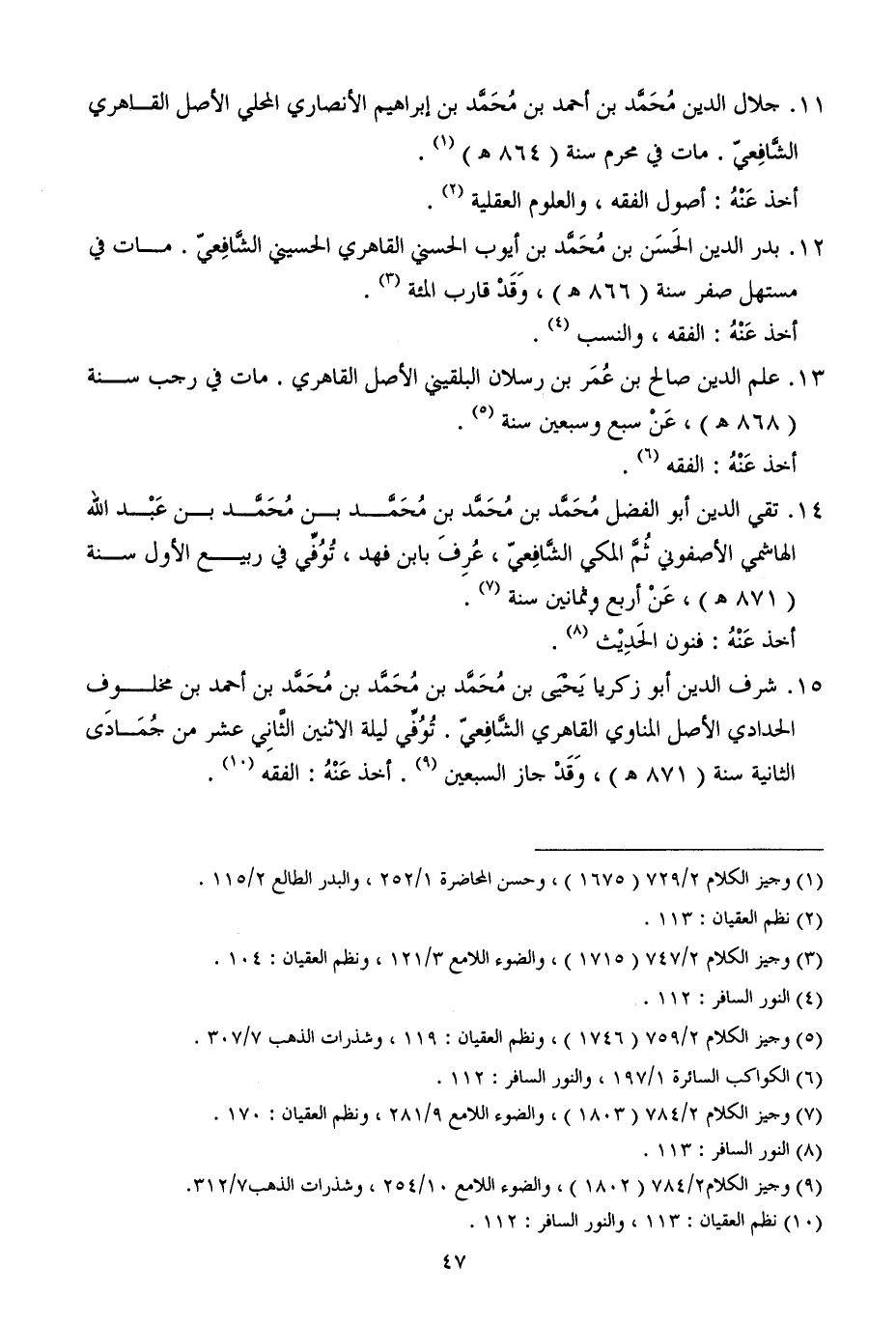 (¬7) وجيز الكلام 2/ 784 (1803)، والضوء اللامع 9/ 281، ونظم العقيان: 170.