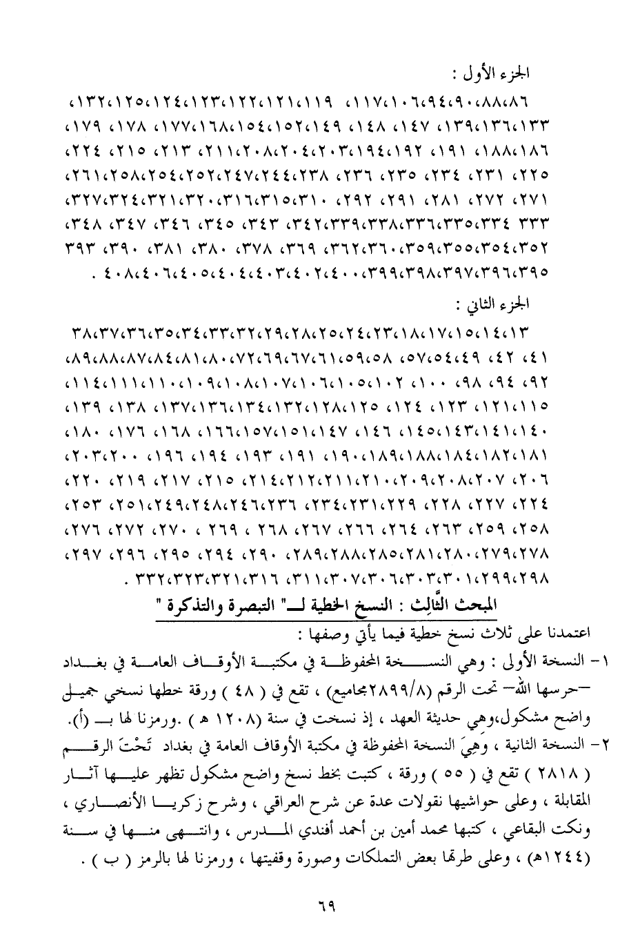 المبحث الثَّالِث: النسخ الخطية لـ" التبصرة والتذكرة "