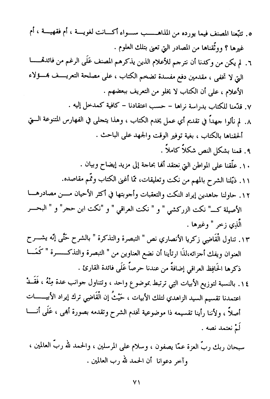 11 - ذيّلنا الشرح بالمهم من نكت وتعليقات، ممّا أغنى الكتاب وتمّم مقاصده.