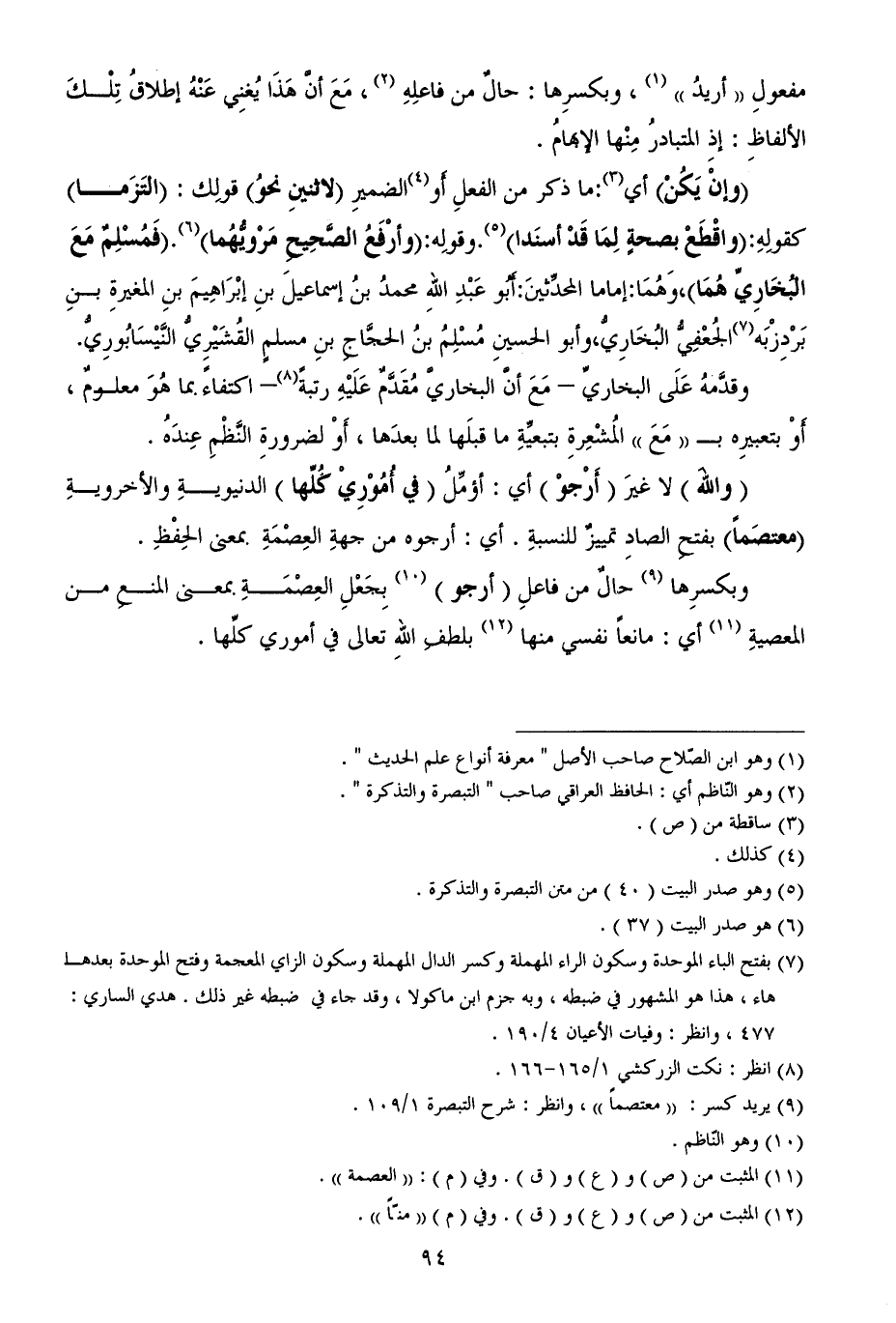 (¬9) يريد كسر: ((معتصماً))، وانظر: شرح التبصرة 1/ 109.