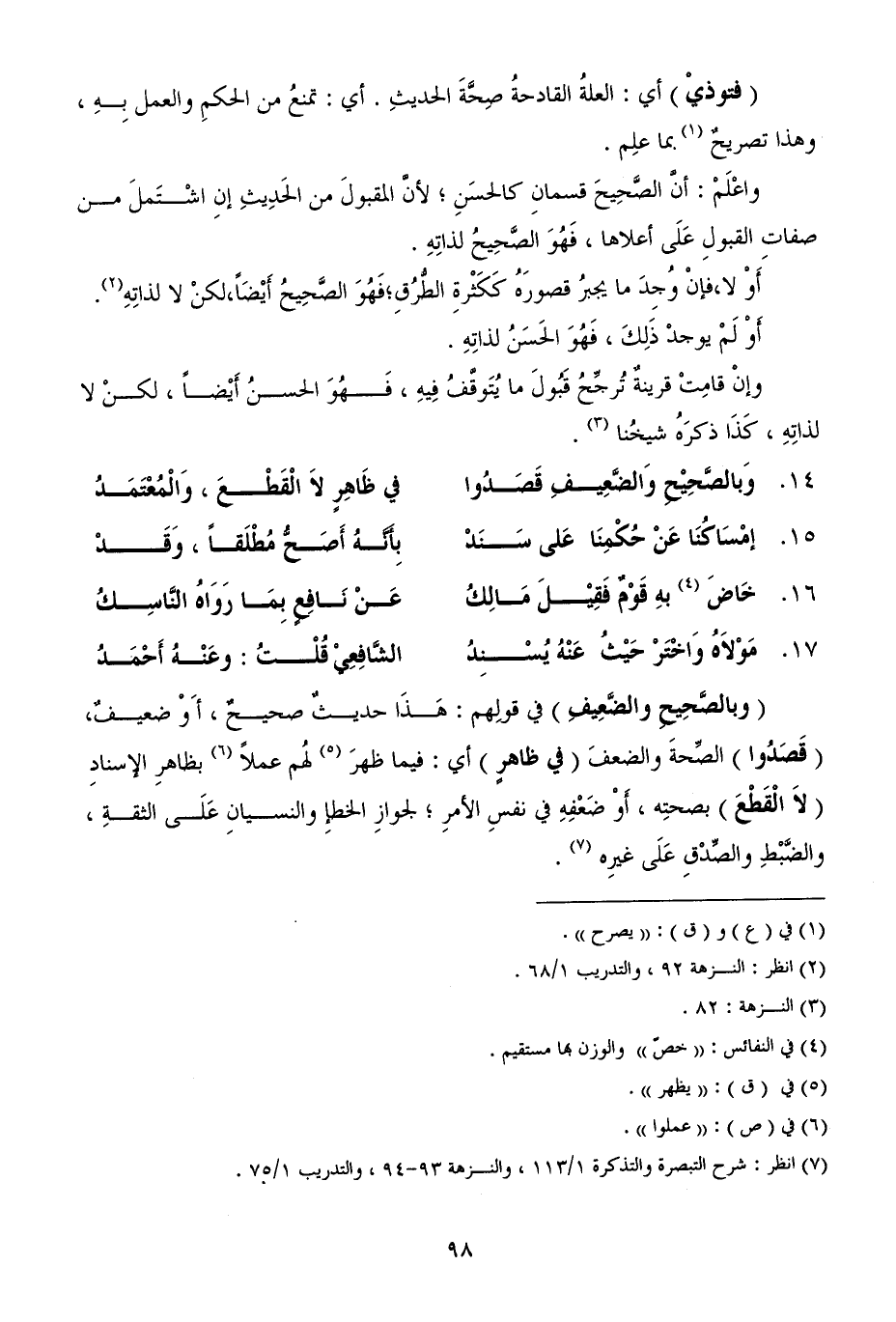 (¬7) انظر: شرح التبصرة والتذكرة 1/ 113، والنزهة 93 - 94، والتدريب 1/ 75.