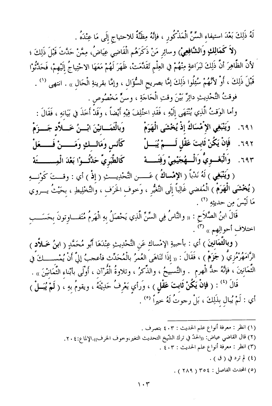 (¬2) قال القاضي عياض: ((الحدّ في ترك الشّيخ التحديث التغير، وخوف الخرف)). الإلماع: 204.