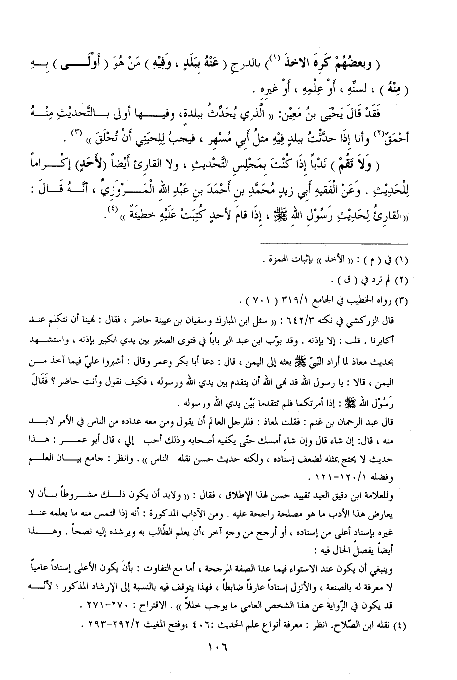 (¬4) نقله ابن الصّلاح. انظر: معرفة أنواع علم الحديث: 406، وفتح المغيث 2/ 292 - 293.