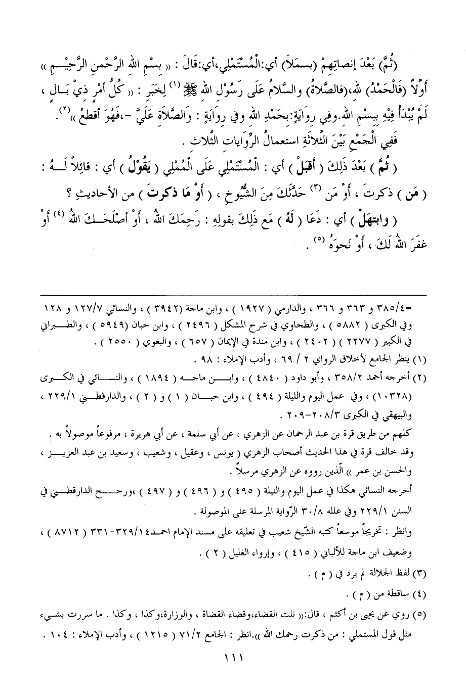 (¬1) ينظر الجامع لأخلاق الرواي 2/ 69، وأدب الإملاء: 98.
