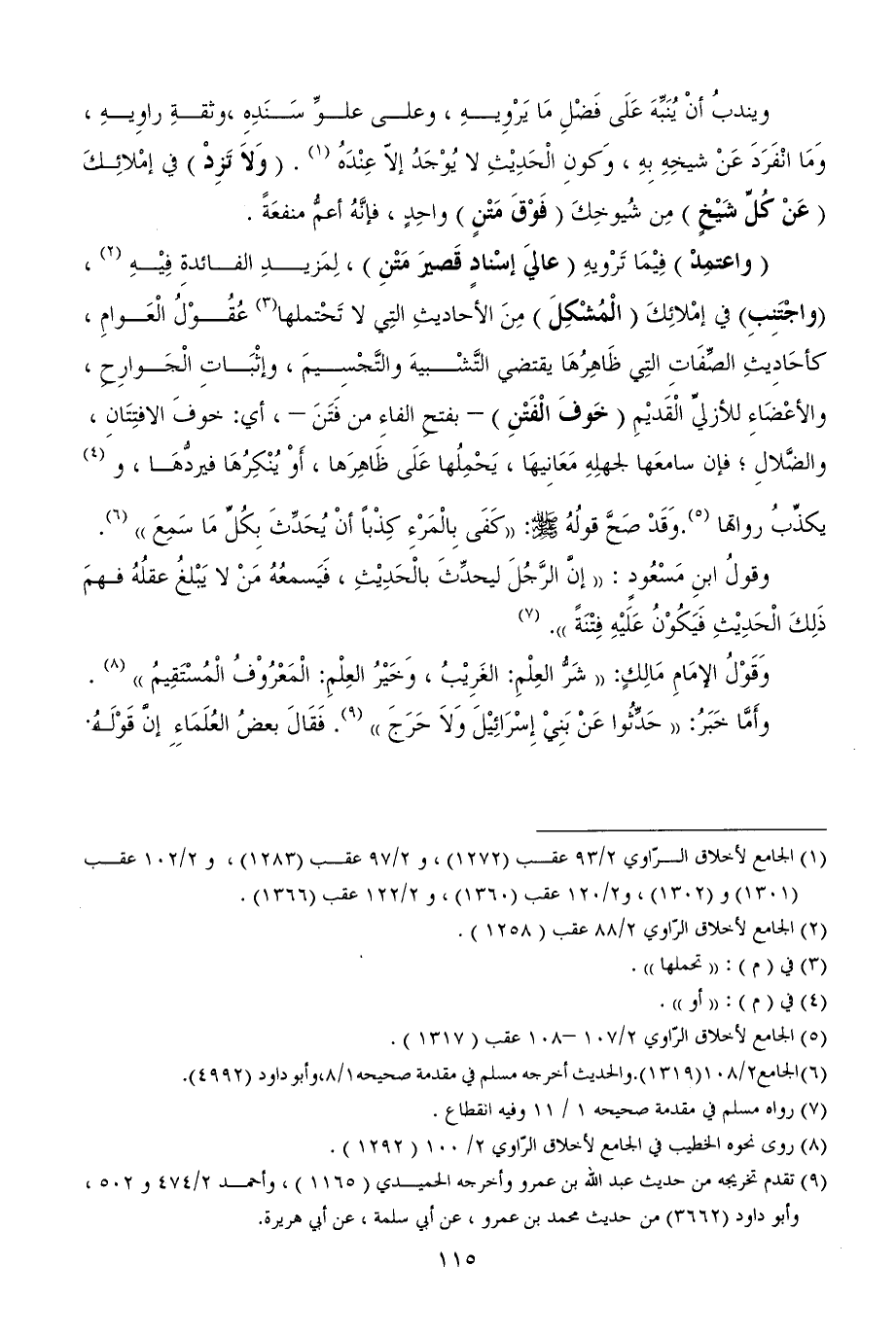 (¬1) الجامع لأخلاق الرّاوي 2/ 93 عقب (1272)، و 2/ 97 عقب (1283)، و 2/ 102 عقب (1301) و (1302)، و2/ 120 عقب (1360)، و 2/ 122 عقب (1366).