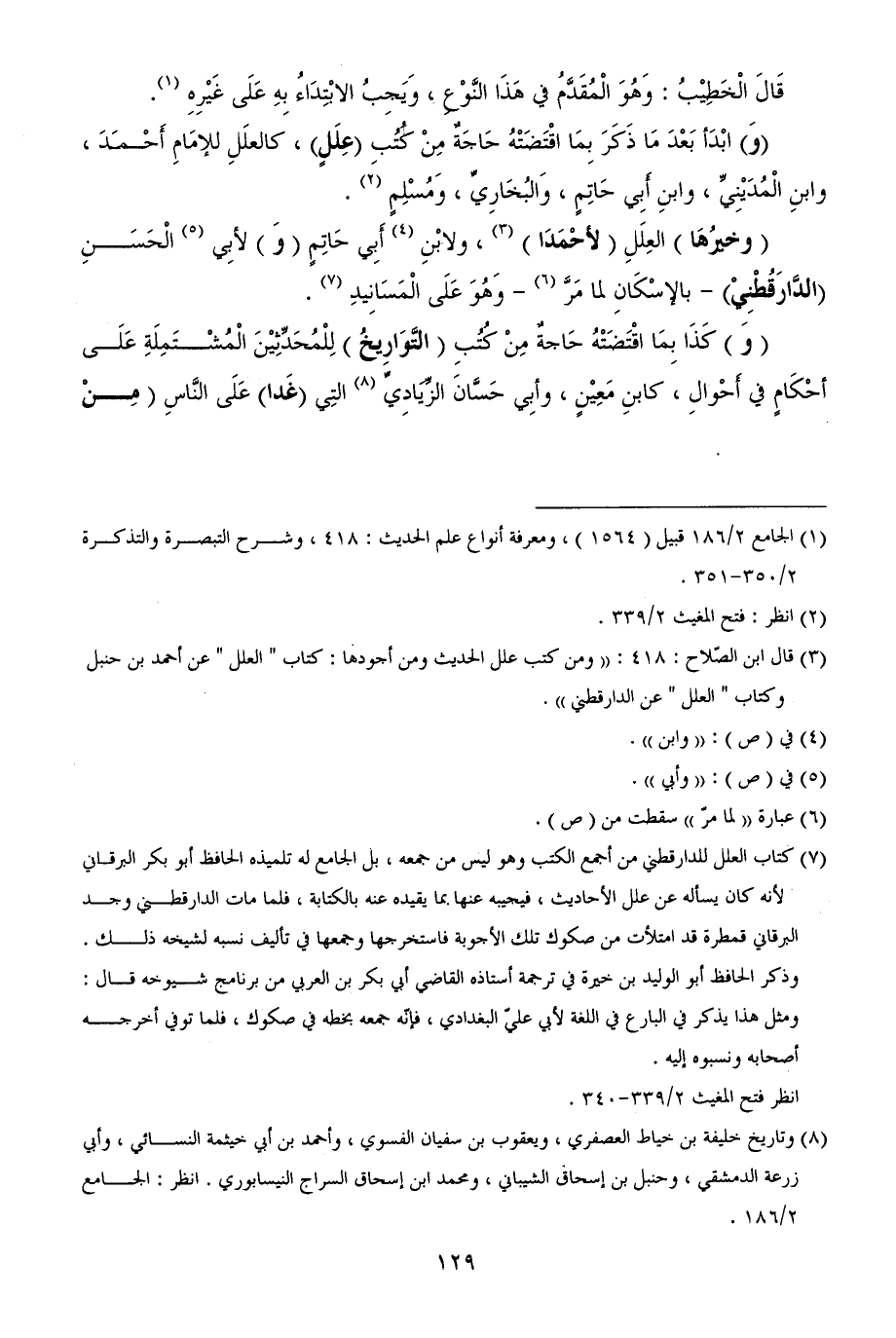 (¬3) قال ابن الصّلاح: 418: ((ومن كتب علل الحديث ومن أجودها: كتاب "العلل" عن أحمد بن حنبل، وكتاب " العلل " عن الدارقطني)).