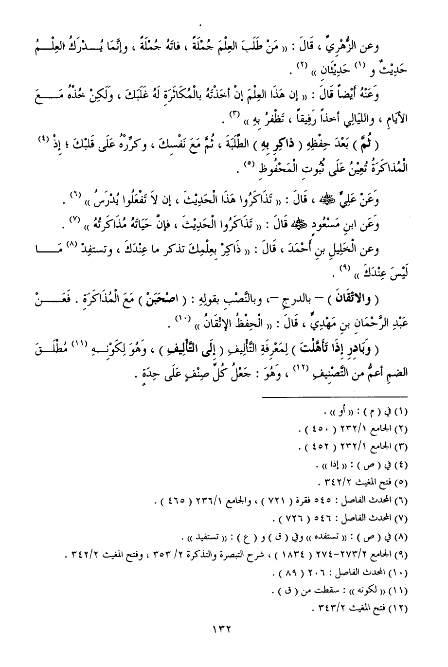(¬9) الجامع 2/ 273 - 274 (1834)، شرح التبصرة والتذكرة 2/ 353، وفتح المغيث 2/ 342.