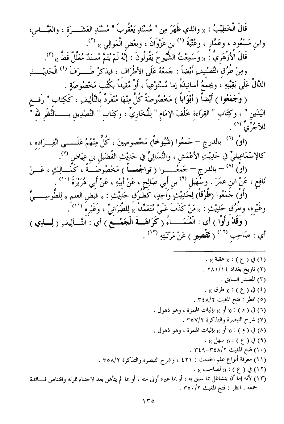 (¬11) معرفة أنواع علم الحديث: 421، وشرح التبصرة والتذكرة 2/ 358.