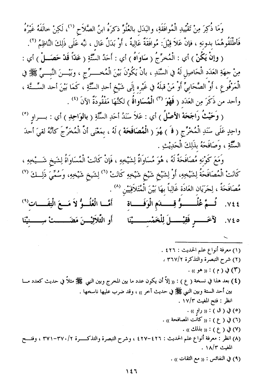 744 - ثُمَّ عُلُوُّ قِدَمِ الْوَفَاةِ ... أَمَّا الْعُلُوُّ لاَ مَعَ الْتِفَاتِ (¬9)