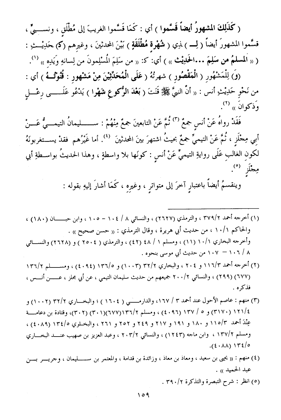 (وَ) لِلْمَشْهُورِ (الْمَقْصُورِ) شهرتُهُ (عَلَى الْمُحَدِّثِيْنَ مِنْ مَشْهورِ: قُنُوْتُهُ) أي: من نَحْوِ حَدِيْثِ أنس: ((أنَّ النبيَّ - صلى الله عليه وسلم - قَنَتَ (بَعْدَ الرُّكوعِ شَهْرا) يَدْعُو عَلَى رِعْلٍ وَذكوانَ)) (¬2).