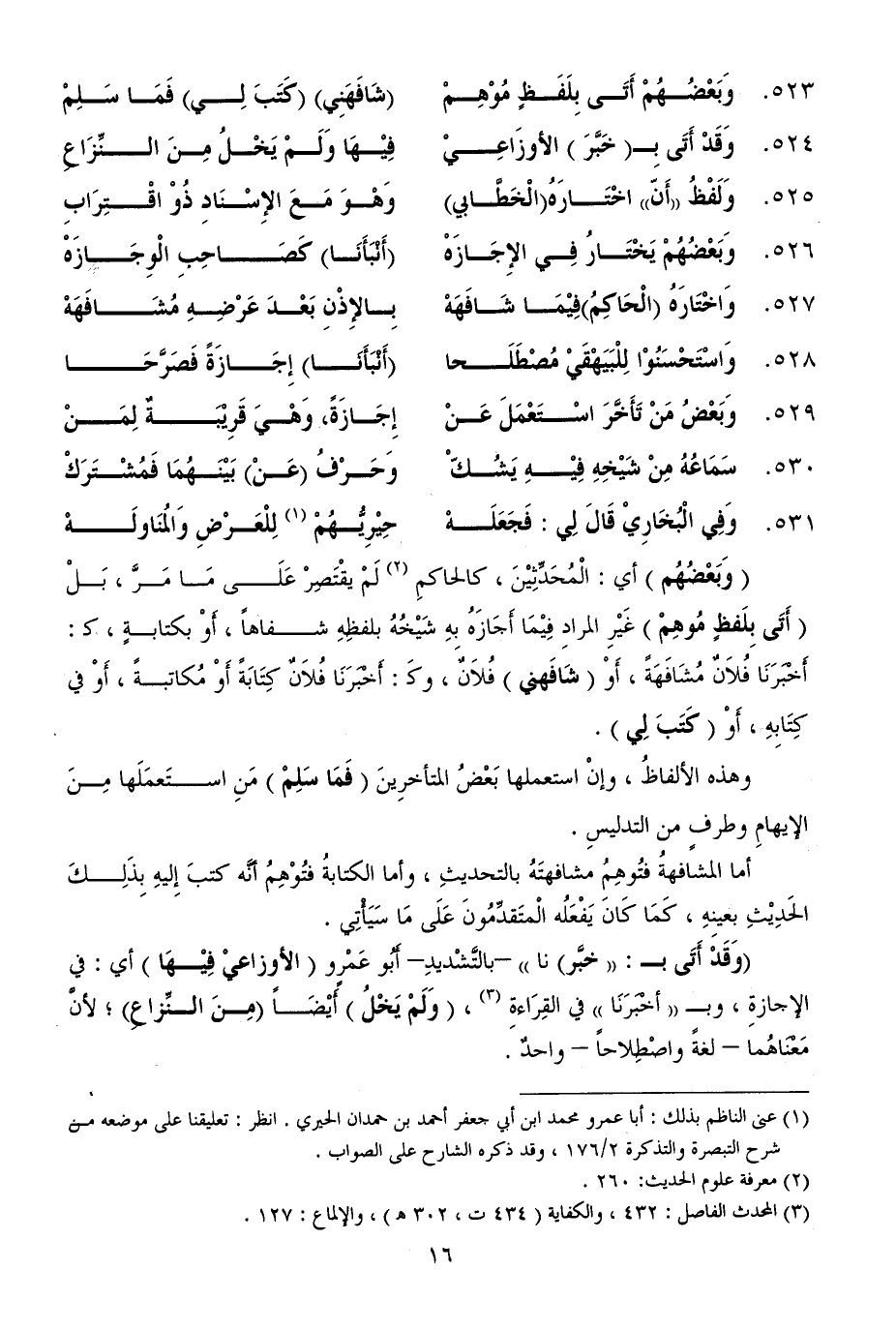 523 - وَبَعْضُهُمْ أَتَى بِلَفَظٍ مُوْهِمْ ... (شَافَهَنِي) (كَتَبَ لِي) فَمَا سَلِمْ